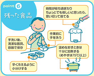 厚生労働省では、「家庭でできる食中毒予防6つのポイント」を推奨しています。